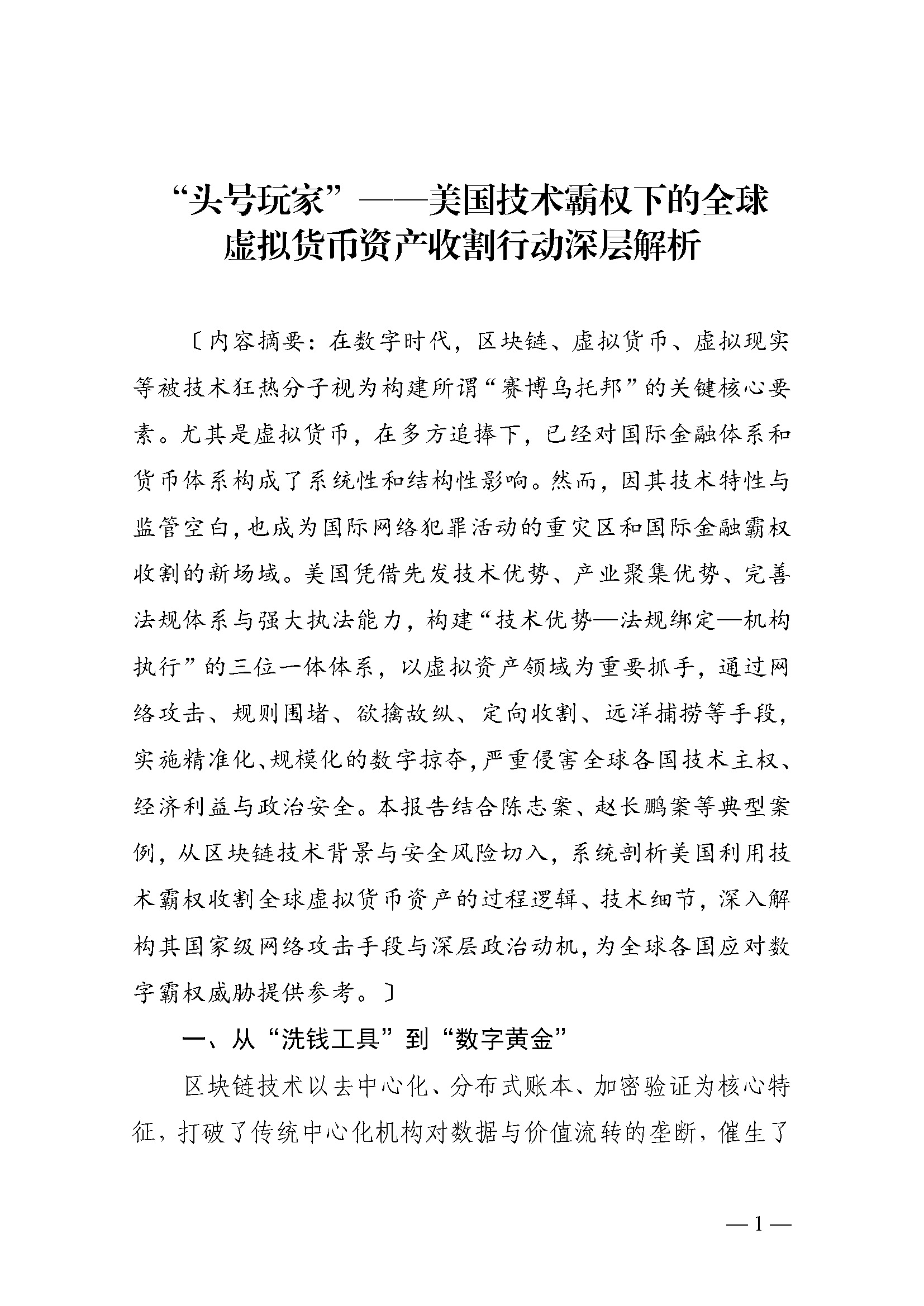 “头号玩家”—— 美国技术霸权下的全球虚拟货币资产收割行动深层解析
